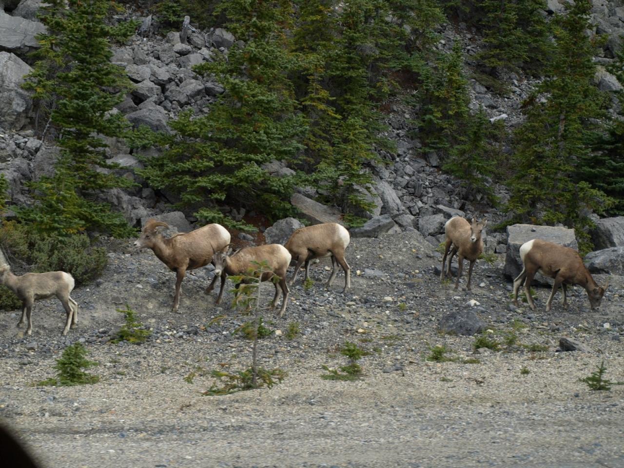 ちなみに、大曲がり途中のこの場所には、コロンビア大氷原からの帰りの時にもビッグホーンシープの群れがずっといました。 -