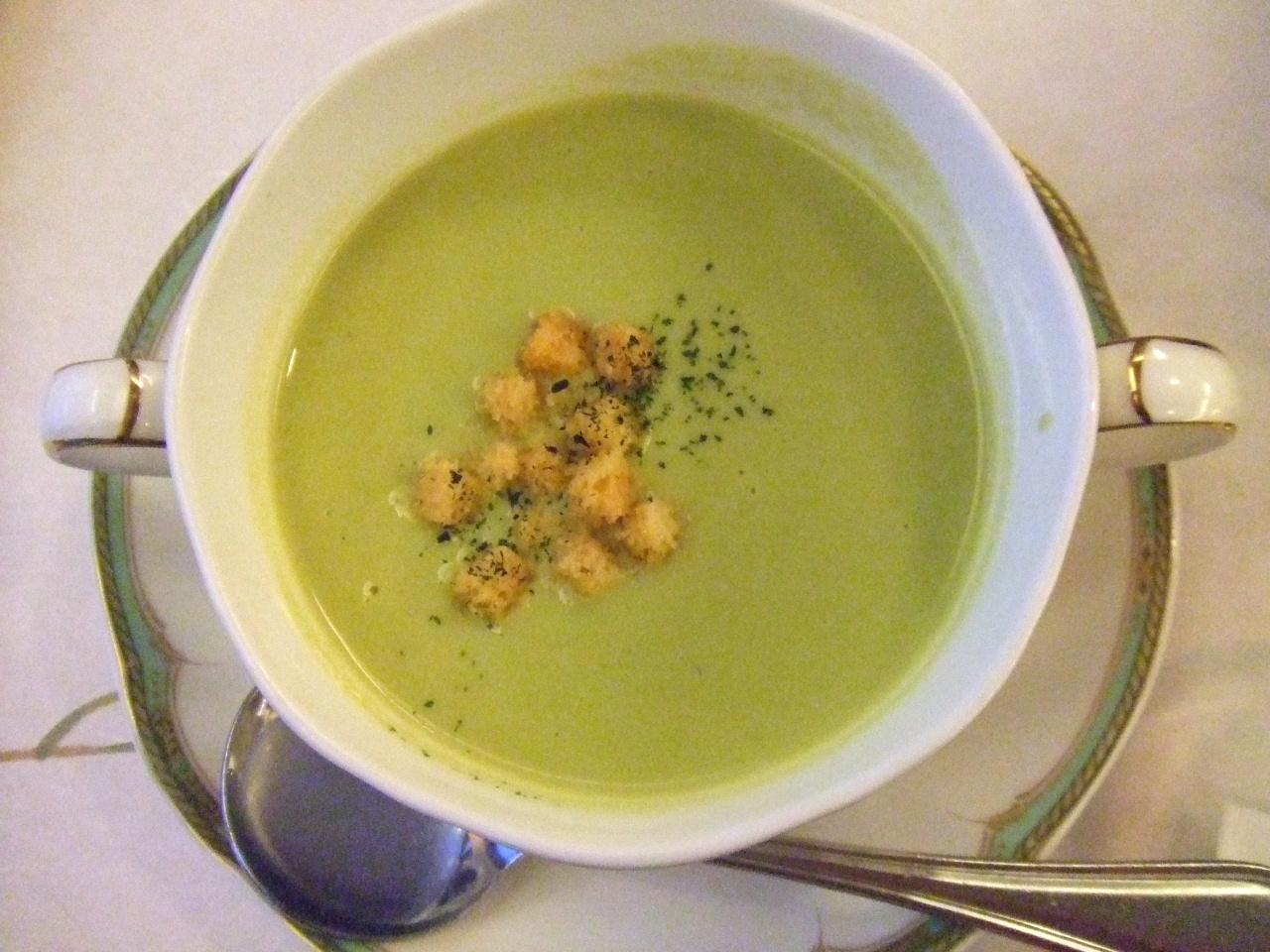 グリーンピースのクリームスープ。濃厚で美味。