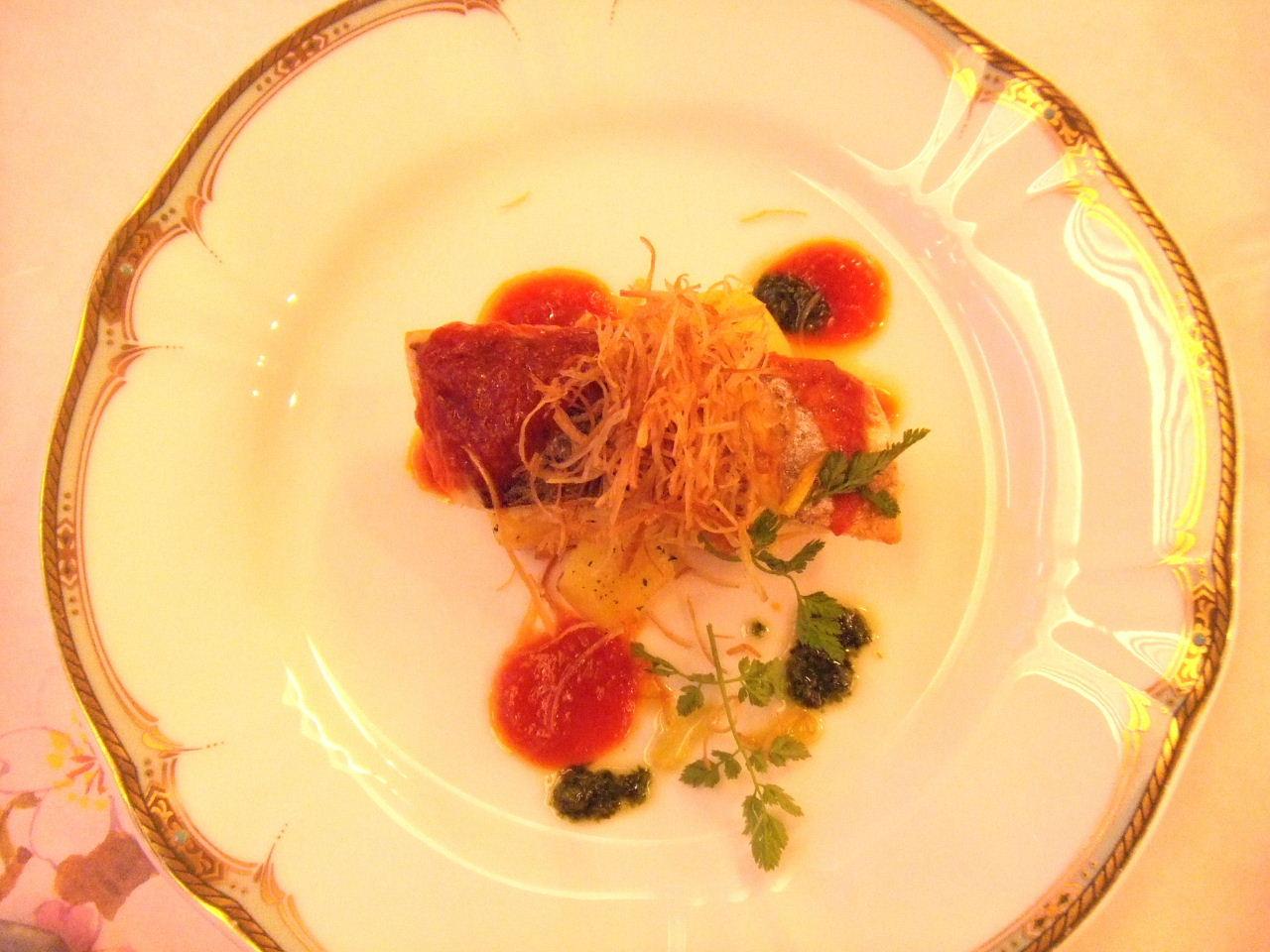 鱸フィレのポワレ 2色ソース。これまたソースが邪魔。