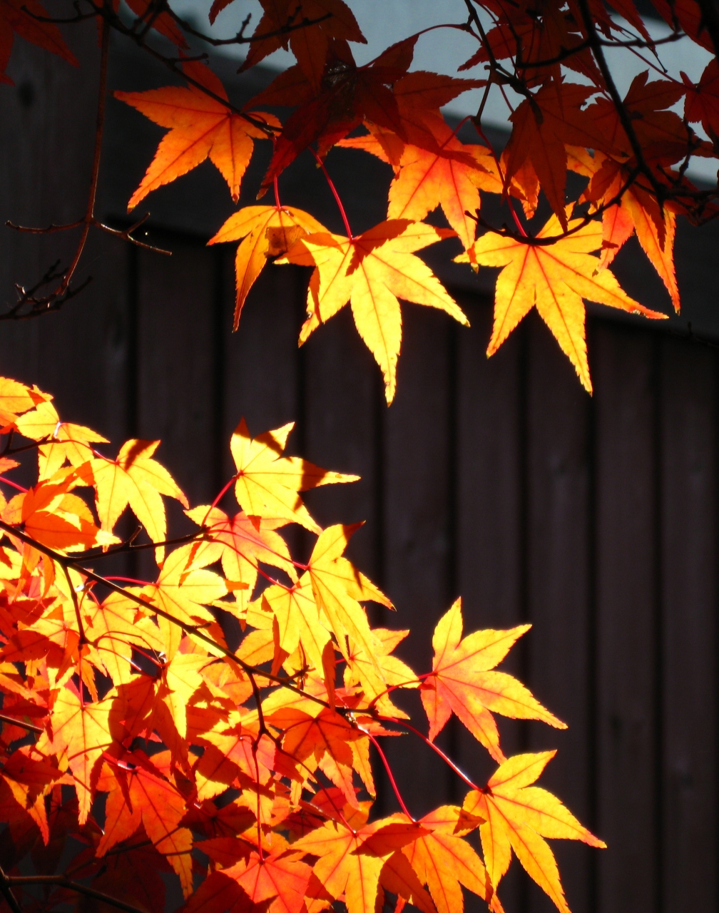 白旗神社の横に綺麗に色づいたモミジと銀杏がありました。街灯にへばりつくような格好が面白かったので撮ってみました。