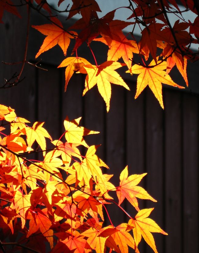 ここのイロハモミジが見事に紅く色づいていました。