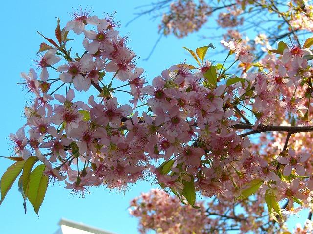 青空にピンク色のヒマラヤ桜・・・ここだけ春がきたみたいです!