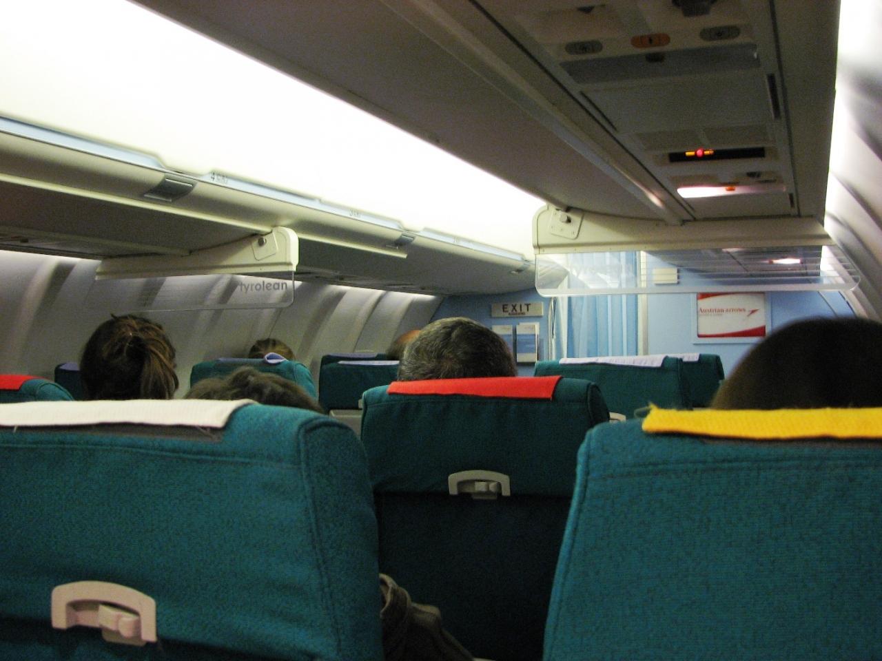 2列2列の小さい飛行機。ほぼ満席でした。