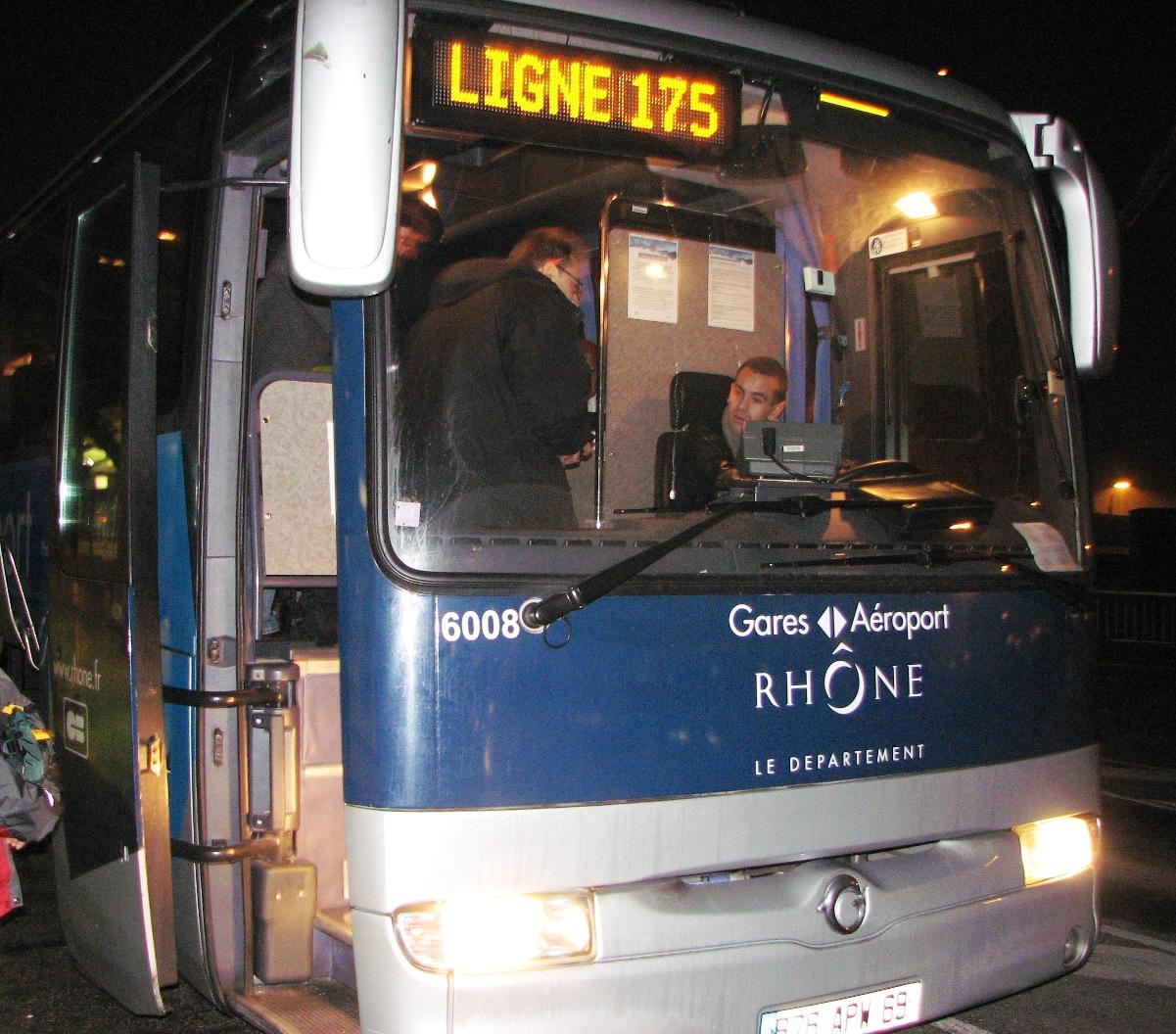 空港からLyonの町までは23時発のシャトルバスで移動。