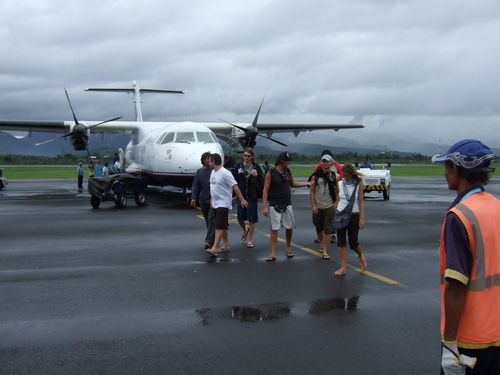 ロンボク島へのトリガナエアーのプロペラ機でロンボク島へ飛立ち