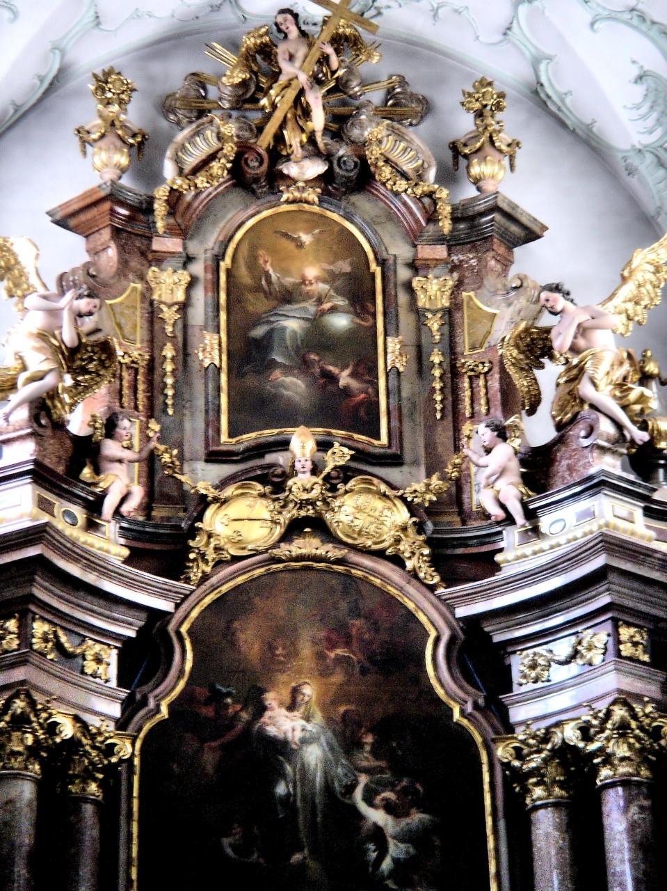 モーツアルトがミサ曲を演奏したといわれる聖堂。純白の壁や天井画、圧倒される荘厳さであった。
