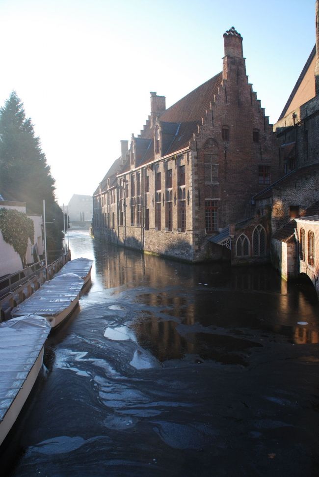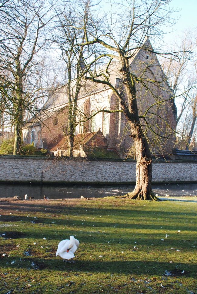 ブルージュへは春・夏・秋とでかけているが、冬は初めて。運河が凍って、名物の運河クルーズはできないが、古い町並みは冬にも映える。
