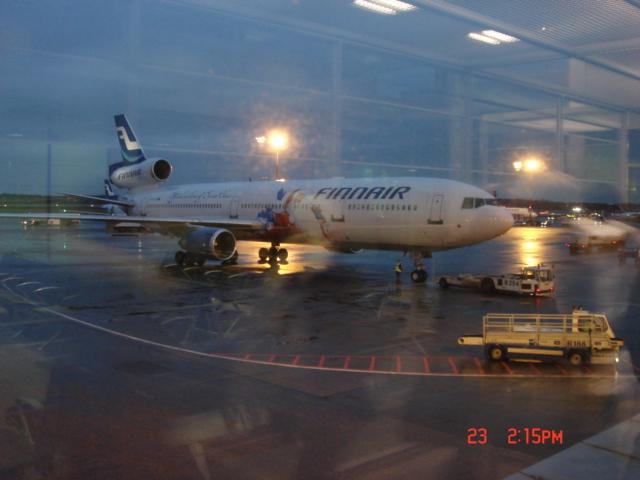 乗り継ぎでヘルシンキ・ヴァンター空港到着時、サンタクロース塗装のMD-11がいました。まさにサンタの国、メリークリスマス!