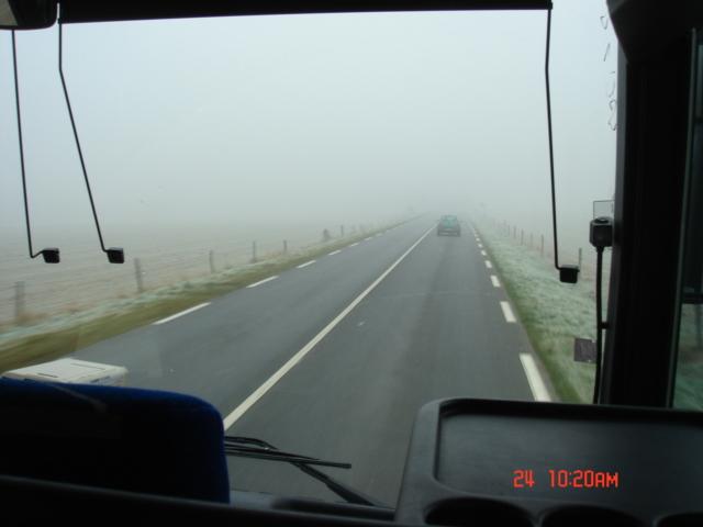 バスの一番前の座席に座る。Renneの町を出るとあいにくの霧であった。視界の悪い時は、200m先がよく見えないほどだ。あとでニュースで知ったのだが、この日お隣のイギリスでは霧でフライトのキャンセルが相次いだそうだ。11時前にMont Saint Michelに到着、海の中に忽然と姿を現すMont Saint Michelを期待したいたが、残念ながら霧で見えず。
