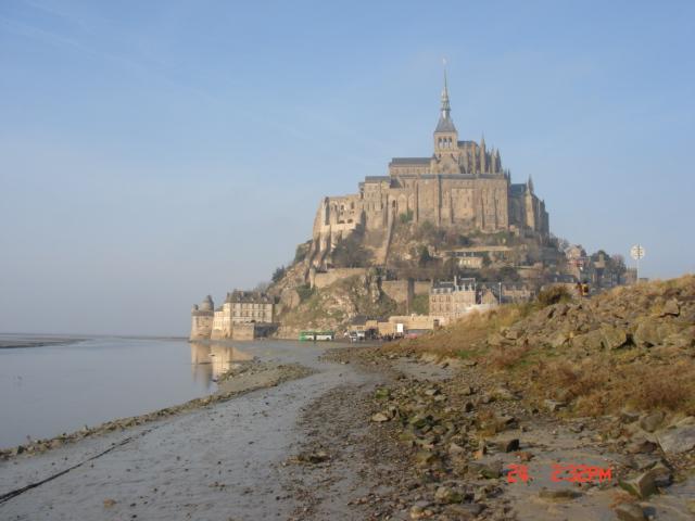 朝来た時の霧がうそのように、午後からは快晴になった。見渡す限りすばらしい風景が続いている。クリスマス休みということで、観光客の車もどんどんやってくる。中には、潮の引いた遠浅の砂浜を犬をつれて散歩している人もいた。しばし、絶景を堪能しMont