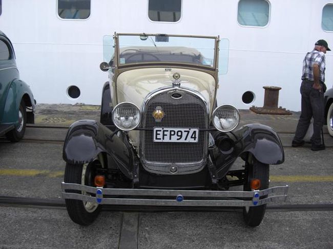 マーキュリー号の乗船口ではアールデコ時代のしゃれた自動車が並んでいた。ここまで運転してきたのだろうか??