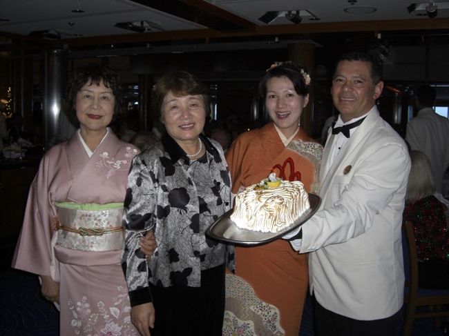 着物を着ていると、船内のいろんな国々の人に声をかけられます。ちょっと得した気分。