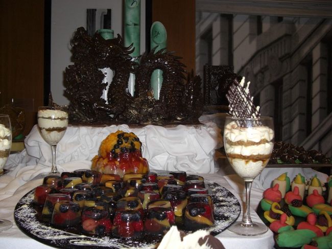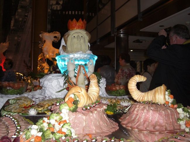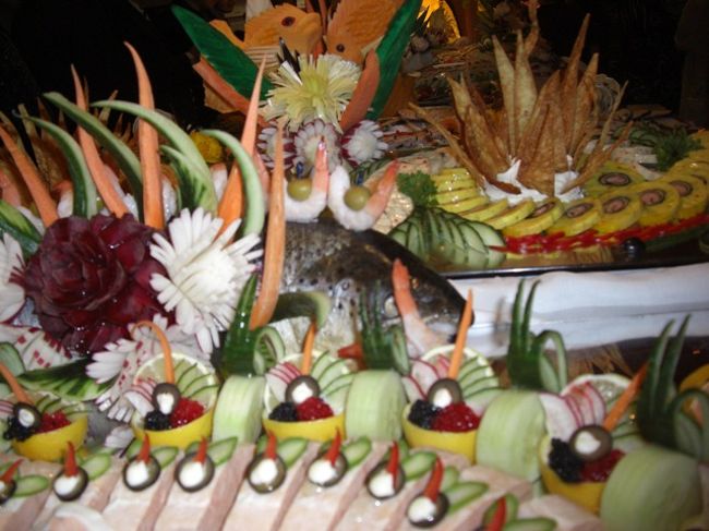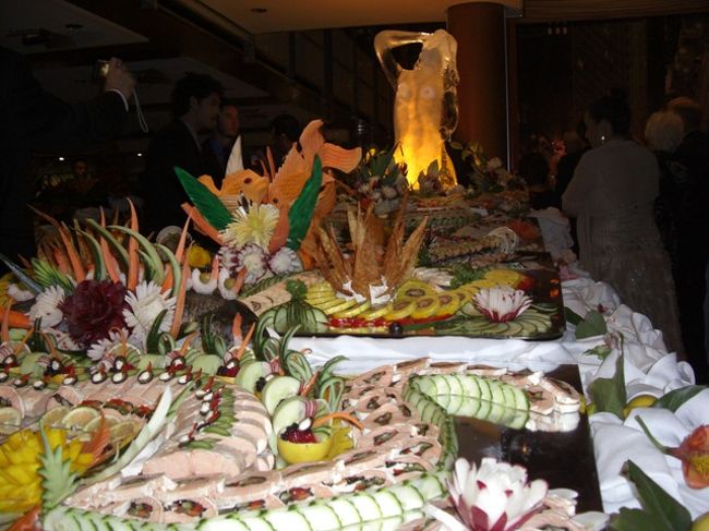 ガラブッフェもセレブリティのメインイベントのひとつ。ほんの二時間前までここで夕食をしていたはずなのに、オードブルやケーキで作られた芸術品がレストランに並べられます。