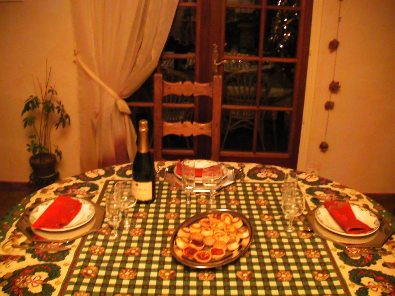 さてこれがクリスマス当日のテーブルセッティング。イブとクリスマスとセッティングを変えるとは、心にくい演出。うーん、このおしゃれ心、勉強になるなぁ。