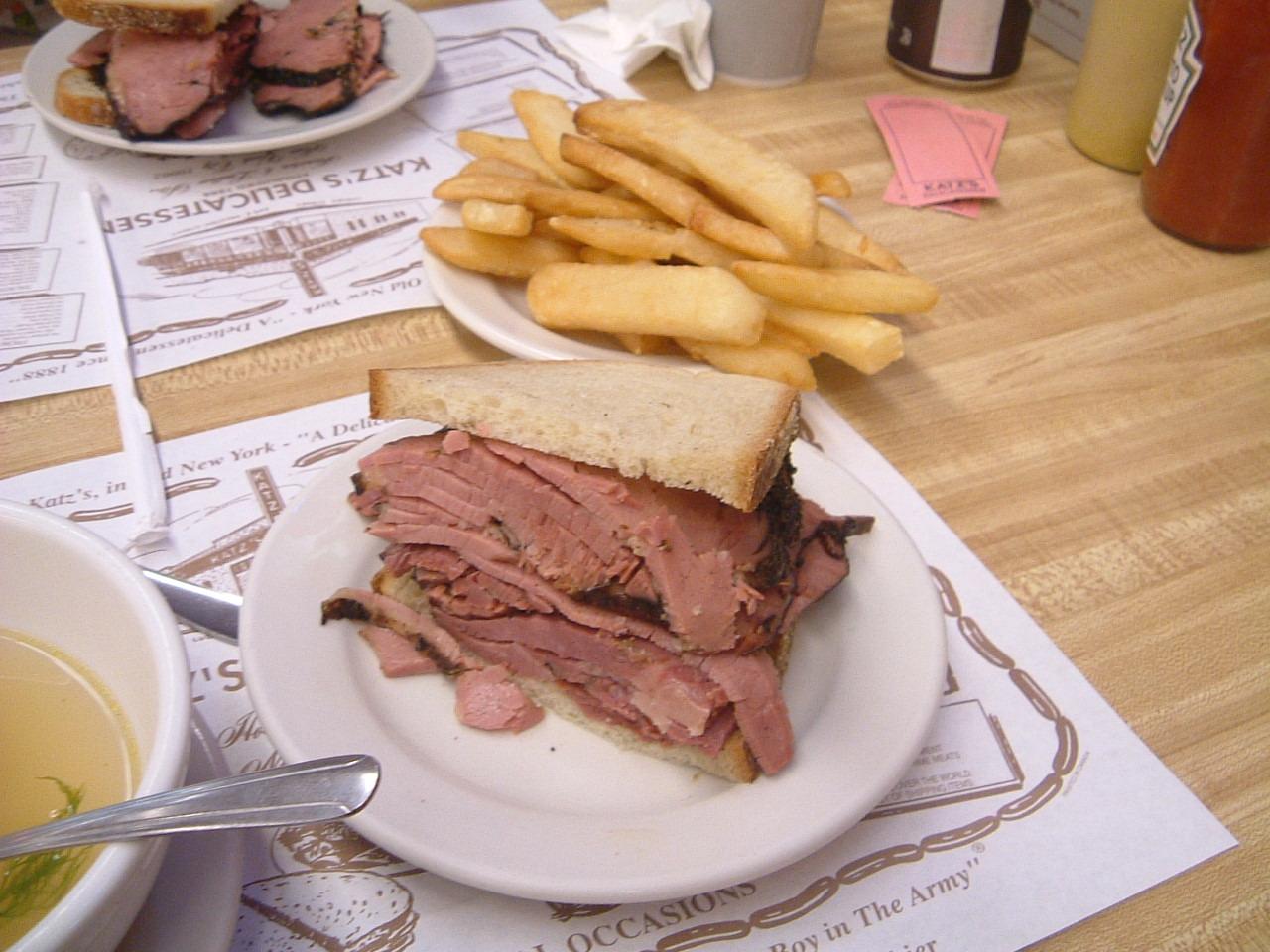 ロウアーイーストのカッツデリカセンへ行き、有名なパストラミサンドを頂きました。