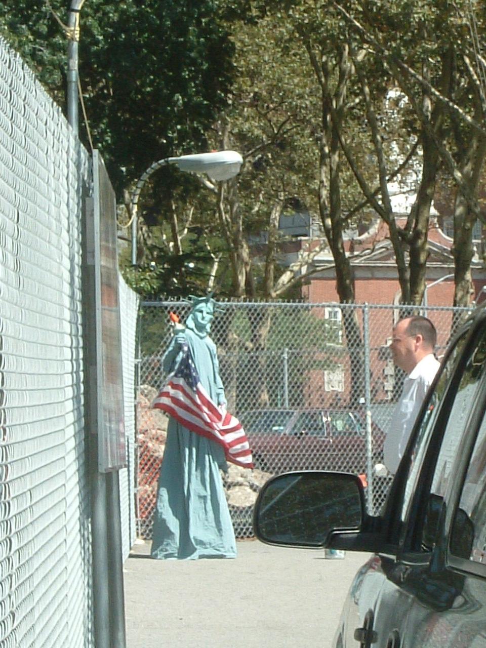 自由の女神の格好した芸人さんが。 -