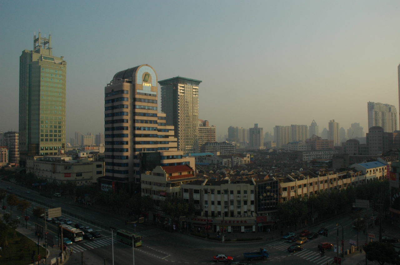オリンピックや万博が控えて、まさに急成長の中国ですが、ちょっと表通りを隔てるとこんな感じです。超高層ビルのとなりには、物干し竿を道路に直角に突き出して洗濯モノが干されていて、ときおり雫が垂れてきます(^_^.)。