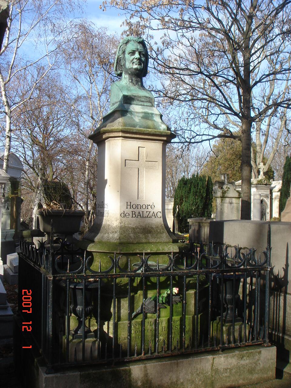 文豪バルザックのお墓。生前に確固たる名声を確立した偉人のお墓は名のある通りに面し、目立つ場所にある。12:38撮影。