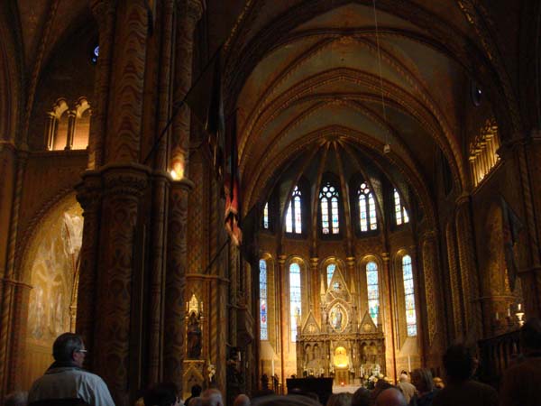 教会の聖堂内にハンガリーの国旗が掲げられていることからもこの教会の格式の高さがうかがえます。 -