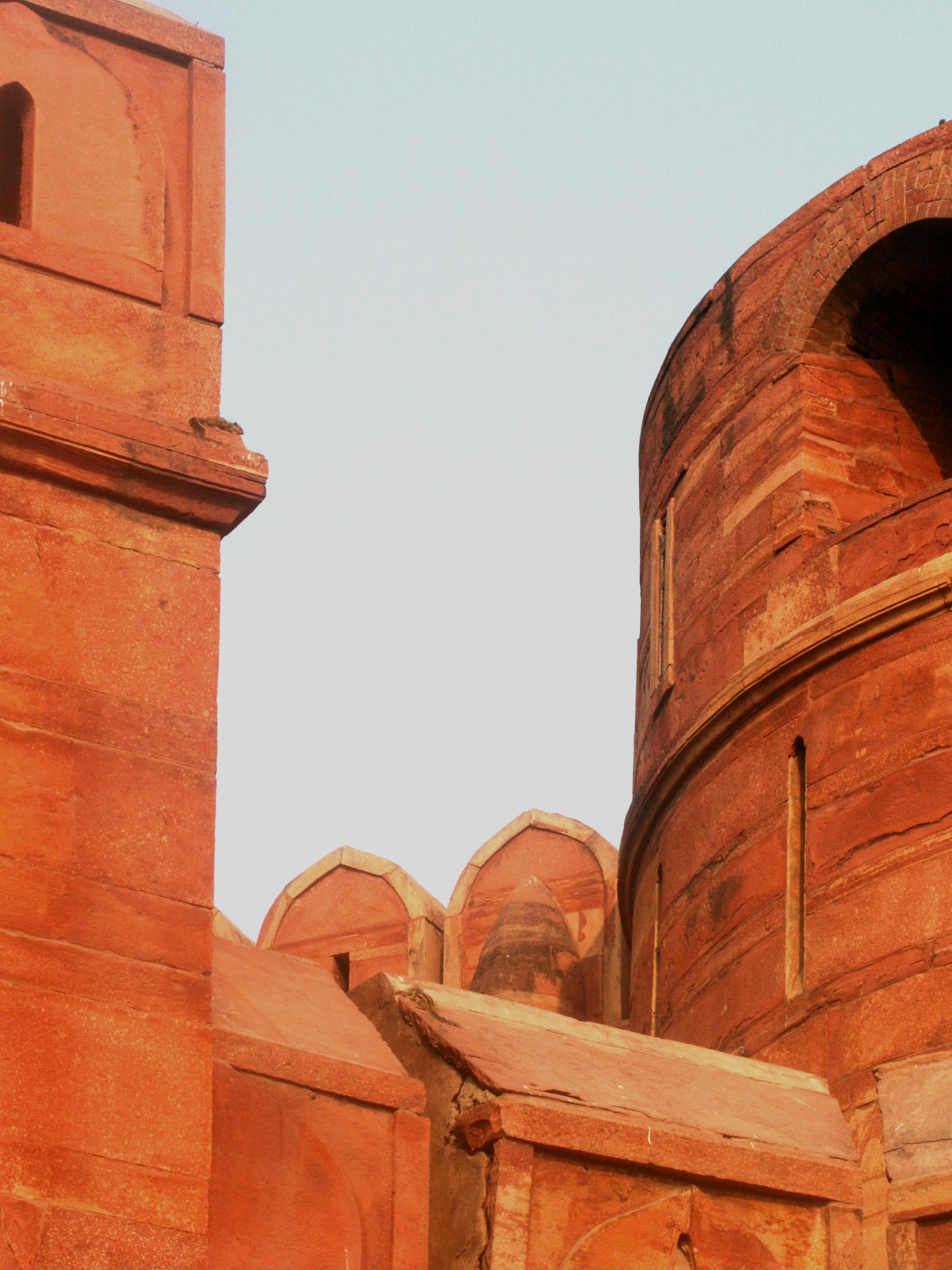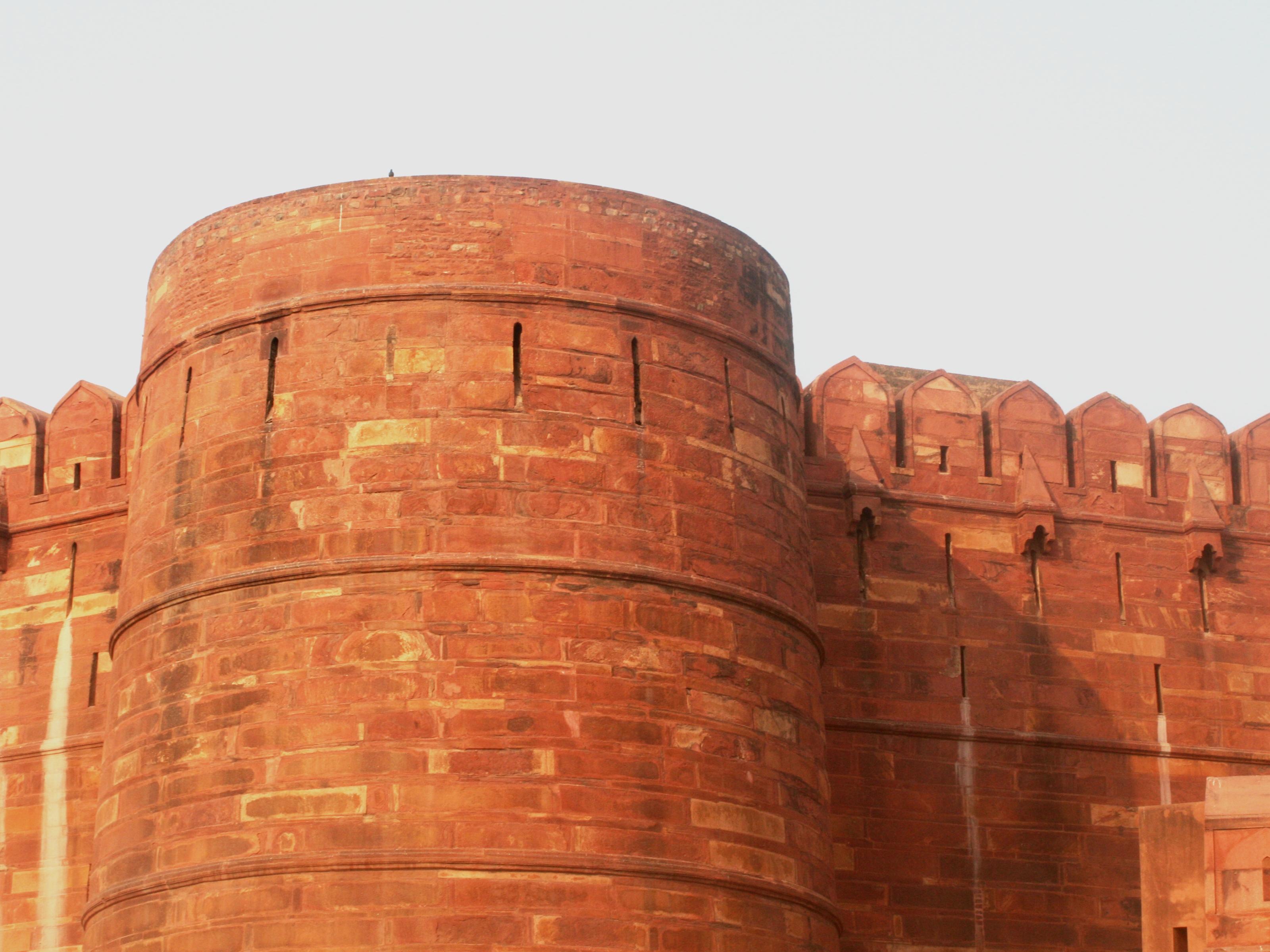 アグラ城は夕日に照らされたような色をしていました。使われた建材が、赤砂岩のためです。建設後、3代の皇帝の居城となりました。