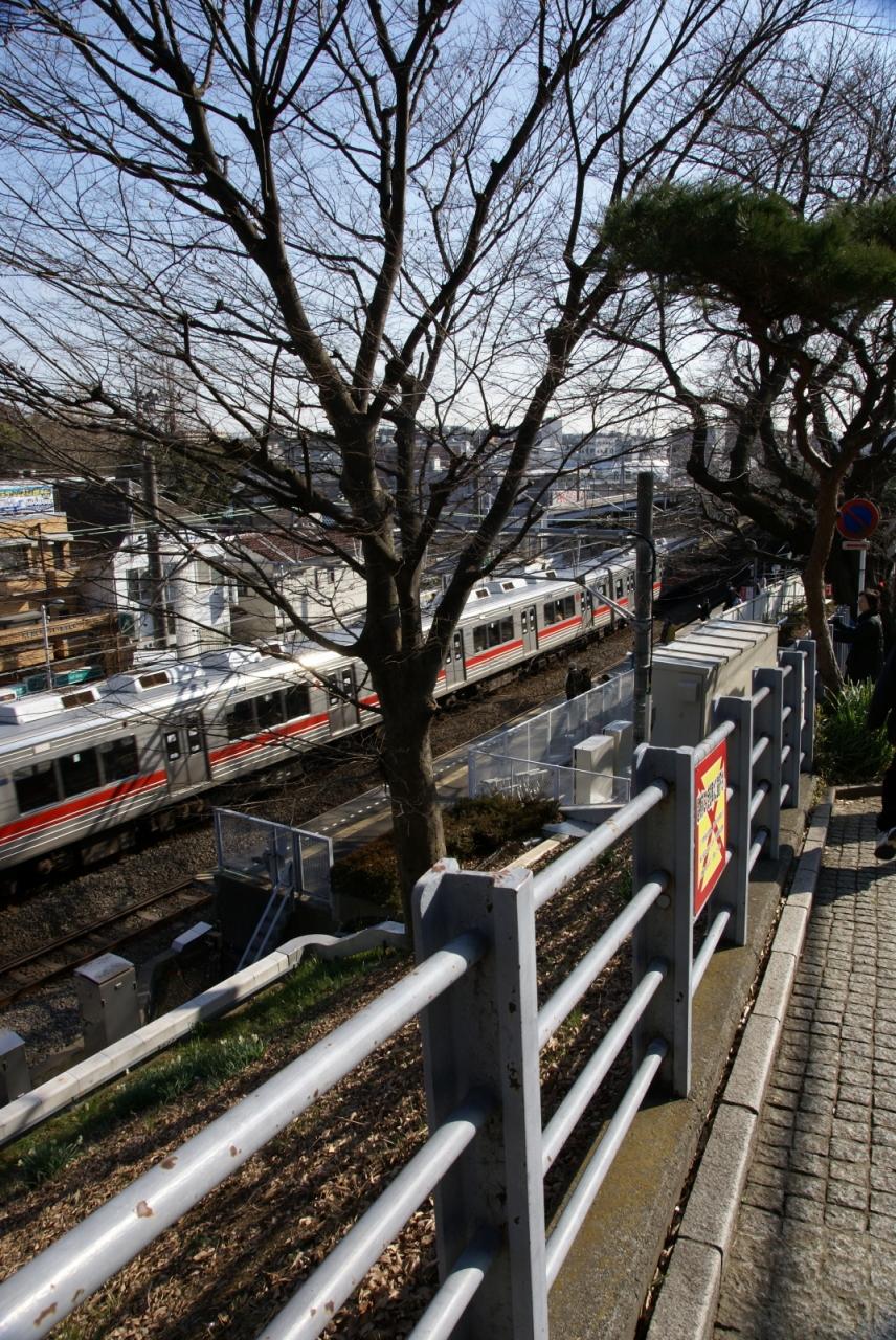 改札を出て右側。上り坂を登っていくと、公園があるようです。結構立派な坂道です。
