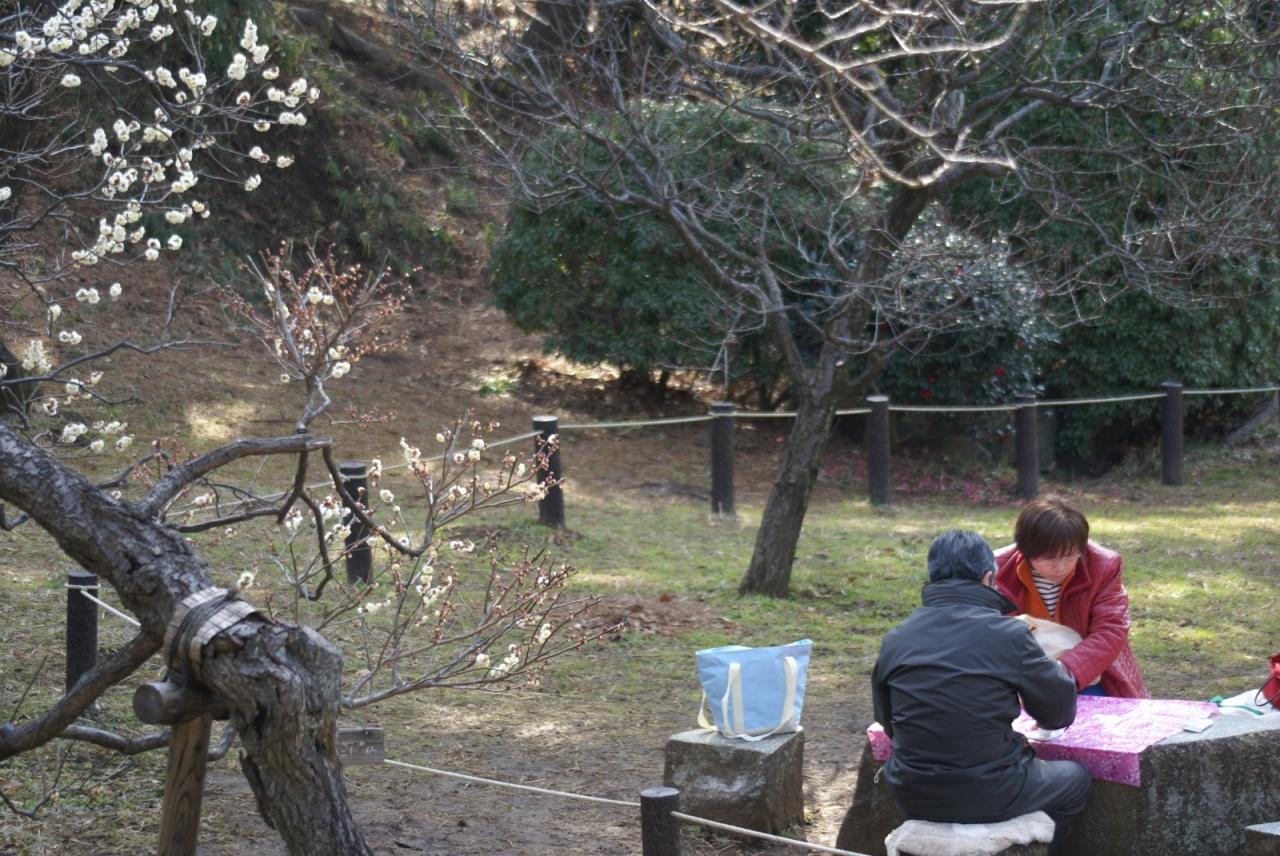 今日は日差しも暖かなので、あちこちでお弁当を広げています。