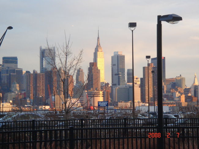 西39丁目の「ピア79」からフェリー(NY WATERWAY)に乗船。ハドソン川を渡り、対岸の「ポート・インペリアル」で下船。ニュージャージー側から夕陽に輝くマンハッタンのビル群を眺めました。