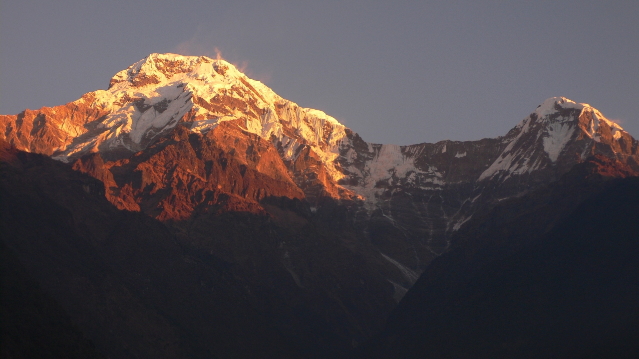 チョモロンで見えた朝のアンナプルナ・サウスとヒウンチュリ(午前7:00)