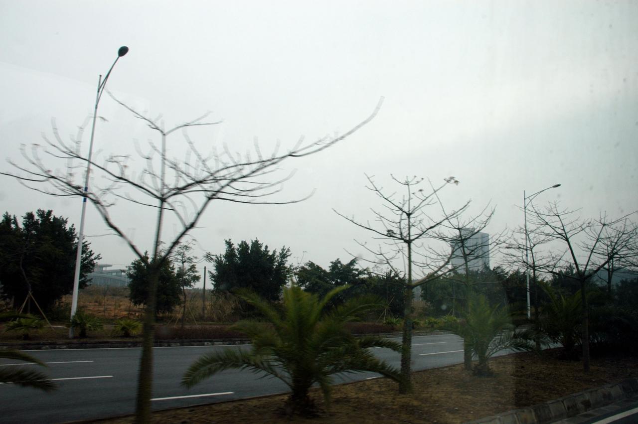 雨で良く見えませんけど、南沙港までの景色をご覧下さい。