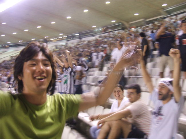 パルメーラシュのサポーターは激しいから、ボタフォゴ側で見た方がいいと昨晩クラブで会った友達に勧められ、その通りにした。ところが、インテルと似たユニフォームのボタフォゴのサポーターも十分激しい(笑)スタンドで松明を振り回しながらドンドコドンドコウォー!ウォー!ウォー!