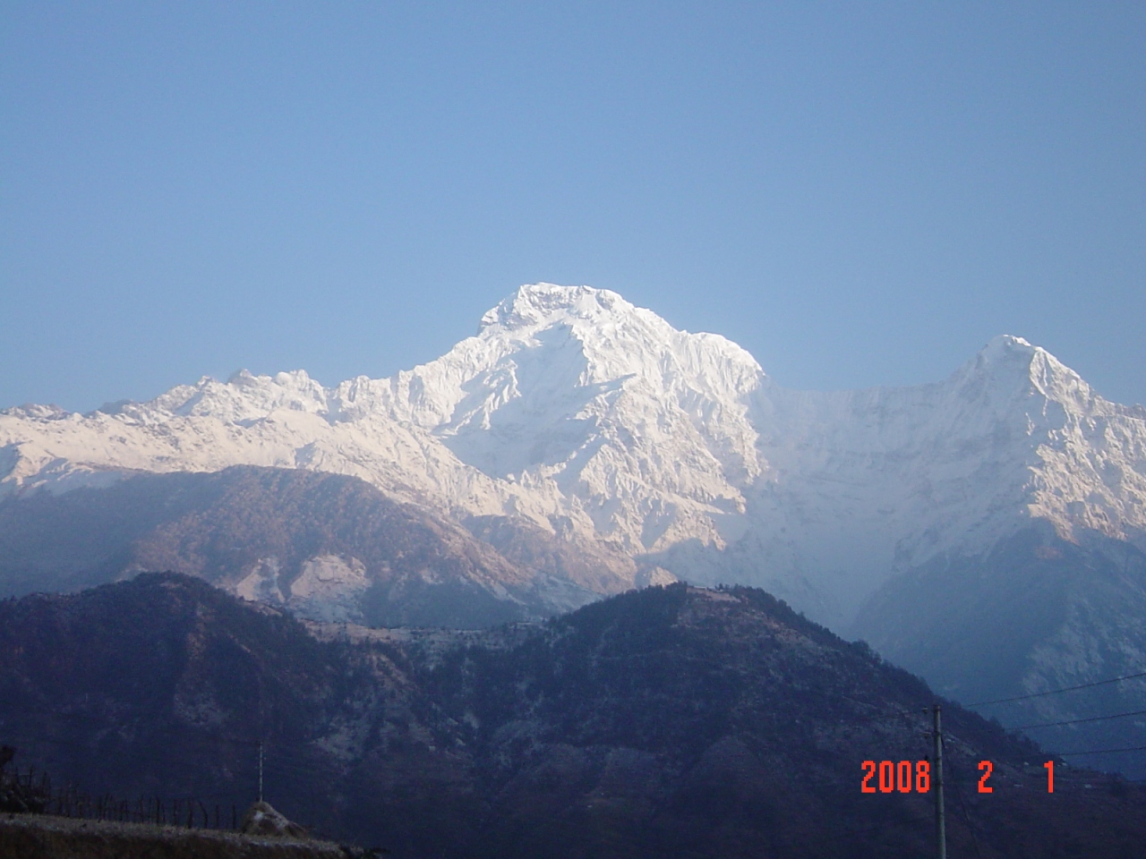 ガンドルンに着いたその日は曇りで山が見えなかった。こんなもんか、と思っていたら翌朝快晴。いきなり見たマチャプチャレに感動。