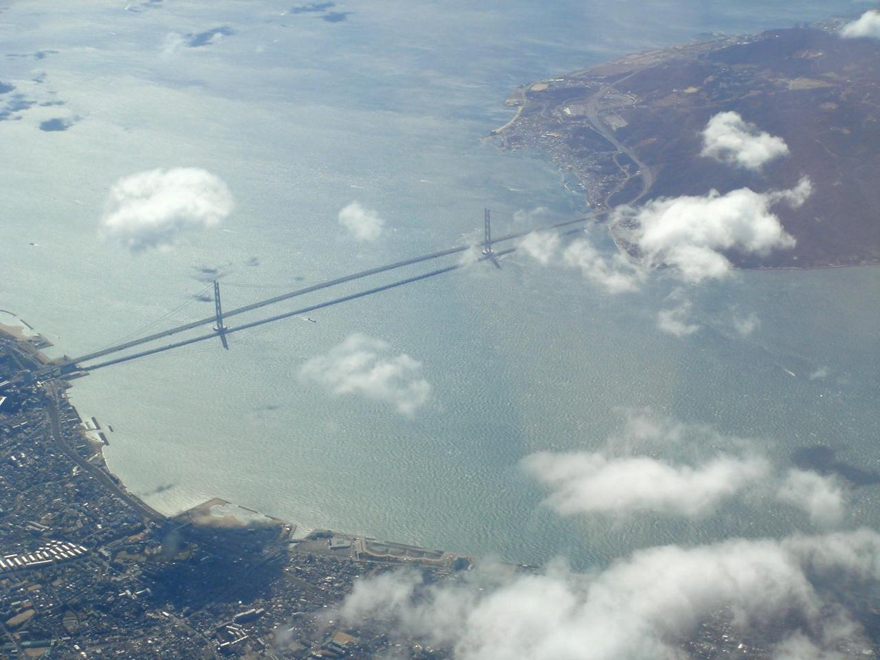 神戸空港や瀬戸内海に架かる橋の上を飛んで行きました。