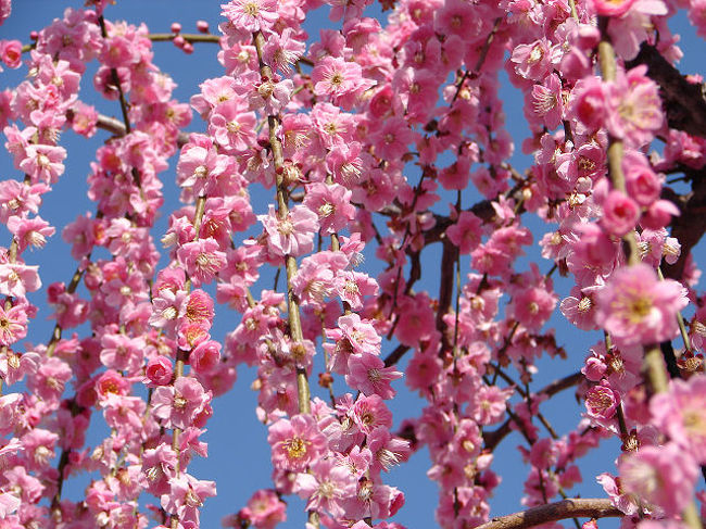 梅苑内には約300本の梅。前日の雨で散り始めている木も多いようですが、まだ充分華やかです。