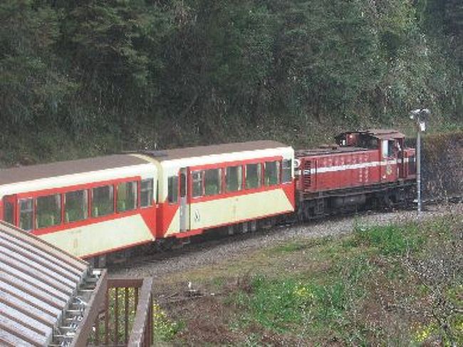 と、食べ終わって携帯いぢってたら蒸気機関車っぽい音が聞こえてきた。気のせいかと思ったけど駅近くまで行ってみたら確かに蒸気機関車だった。乗らないと損な気分になったので次の列車の切符を購入。そして、列車に乗って山を下って…1駅で終点だった。このまま蒸気機関車に乗って戻っても良いんだけど、戻った所でする事も無いので歩いて戻る事にした。せっかくだから山の景色も楽しまないとーと思って道を進むけどひたすら登り道。結構ハードだった。途中、一本の桜の木に群がってる人たちを見た。みんな花見に来たんだろうけどちょっと時期が早かったんだろうね。。。