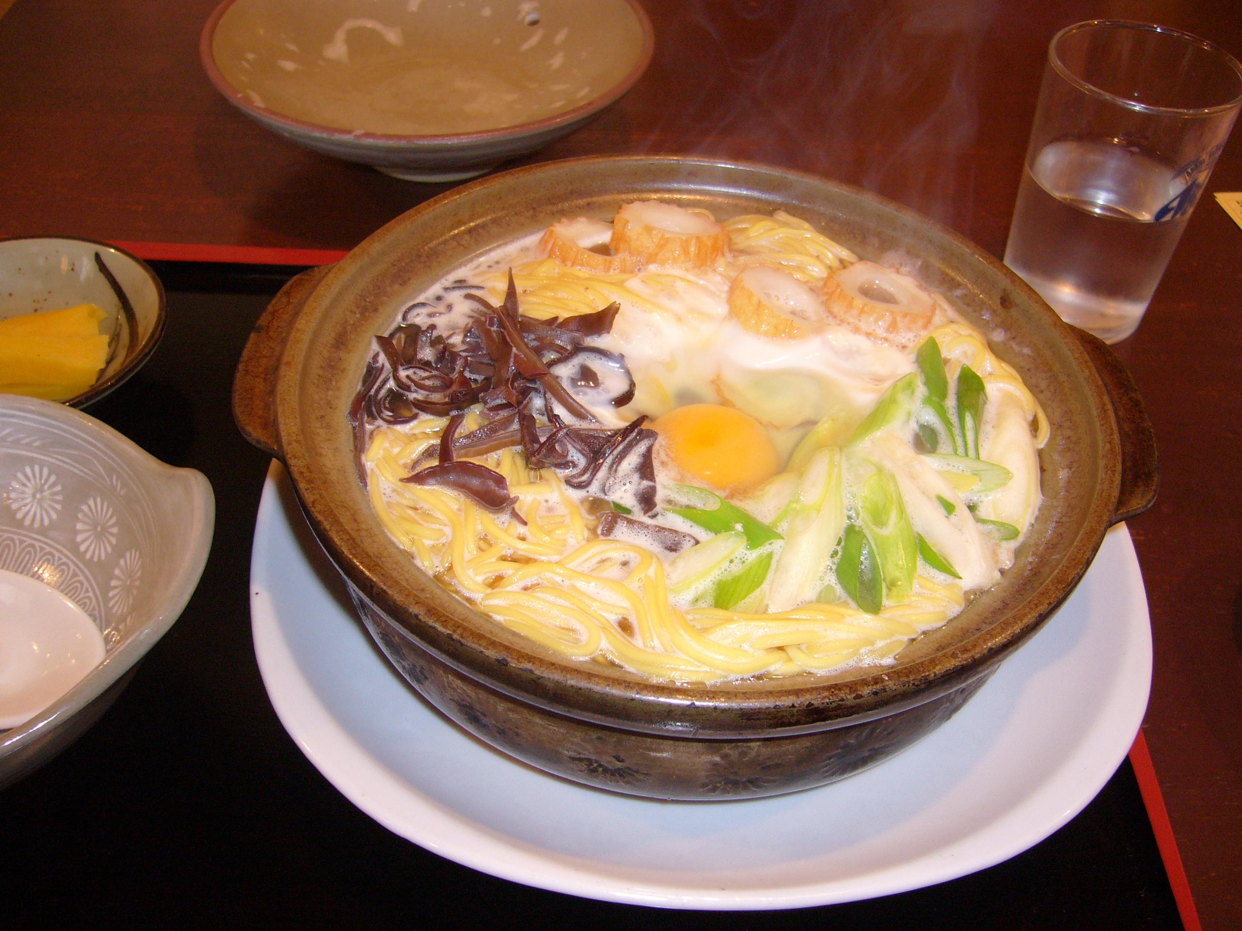 味は鍋焼きうどんのだしと具材にラーメンを入れた感じ。