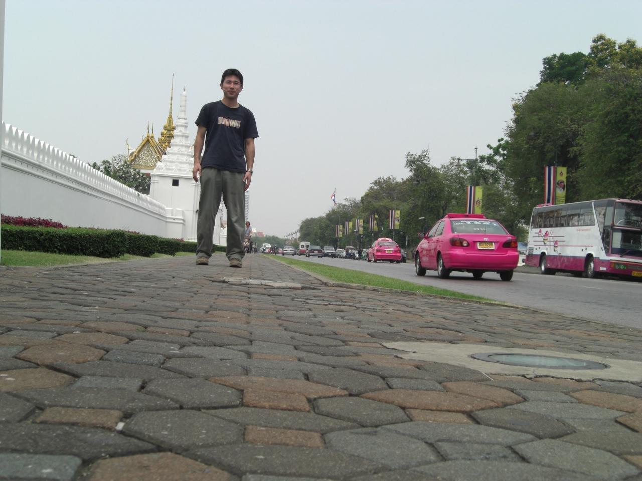 ワット・ポーへ向かう途中で(ワット・ポーの東側の通りで)。デジカメを地面にセットして撮影。