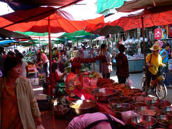 水をかけられる前に、まずは市場へ買出しへ。。。