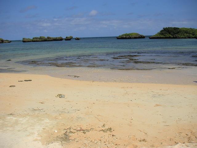 うっそうとした森をぬけると南風見田浜です。肉眼では遠くに波照間が見えるのですが、デジカメをWEB用のサイズにおとしてあるので拡大してもよくわからないかも…。