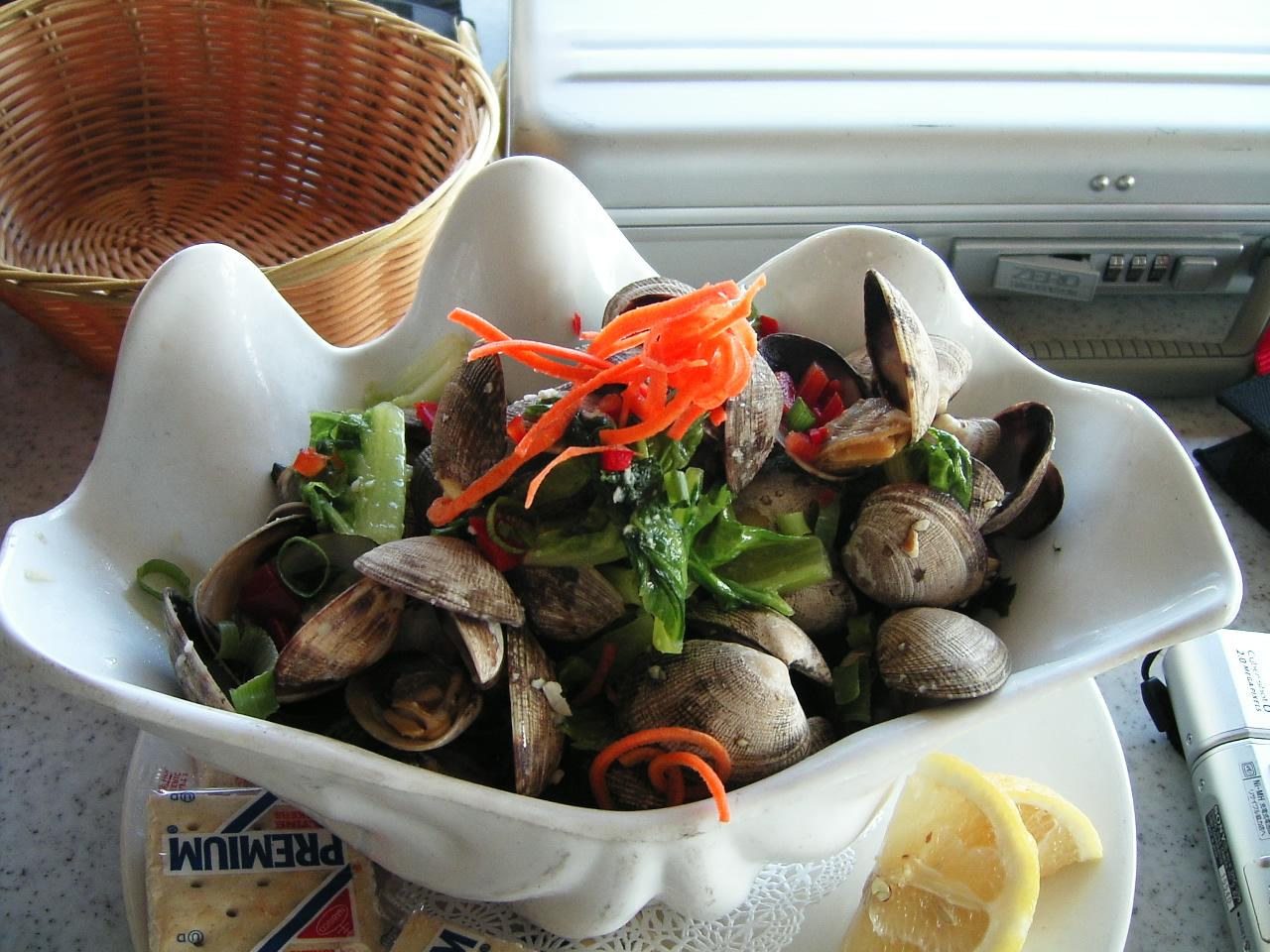 特に生牡蠣とアサリの酒蒸しは美味しいですが、この酒蒸しの器は