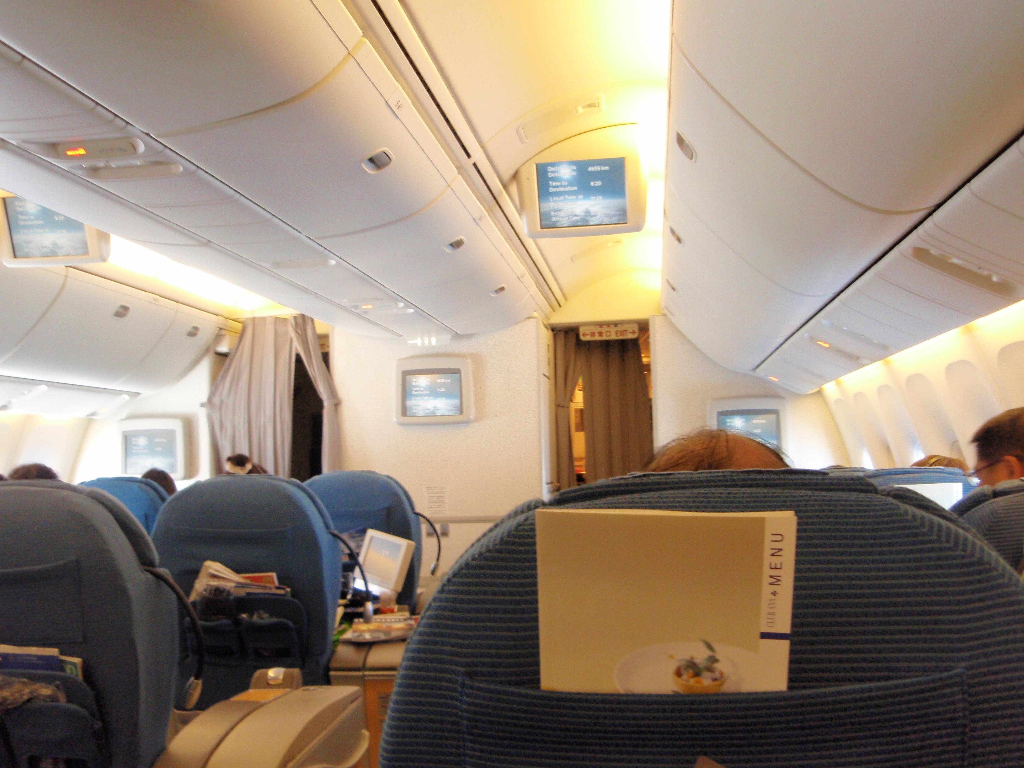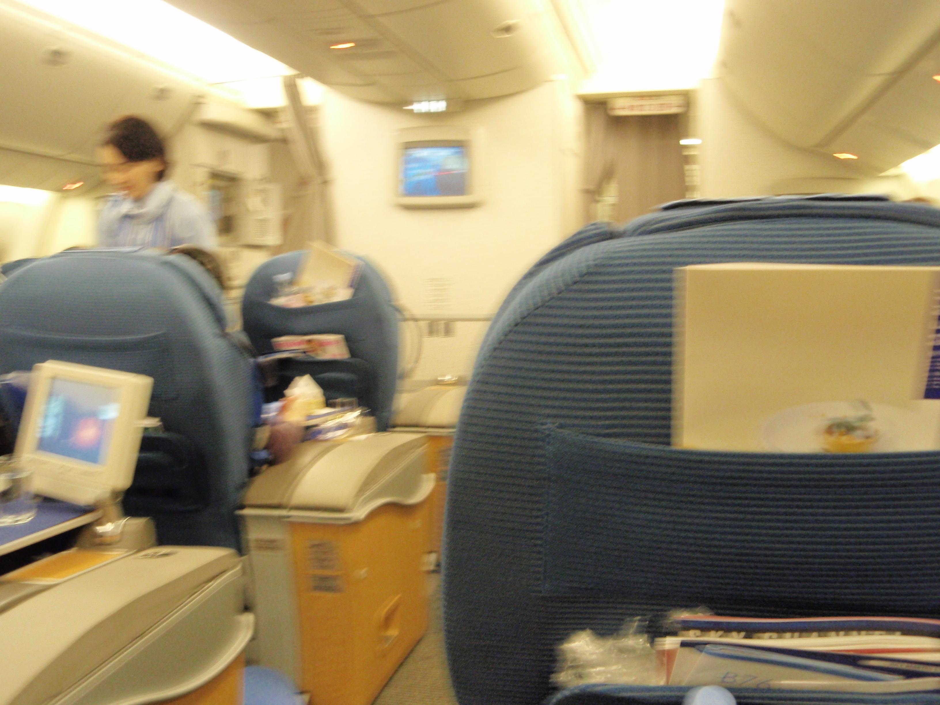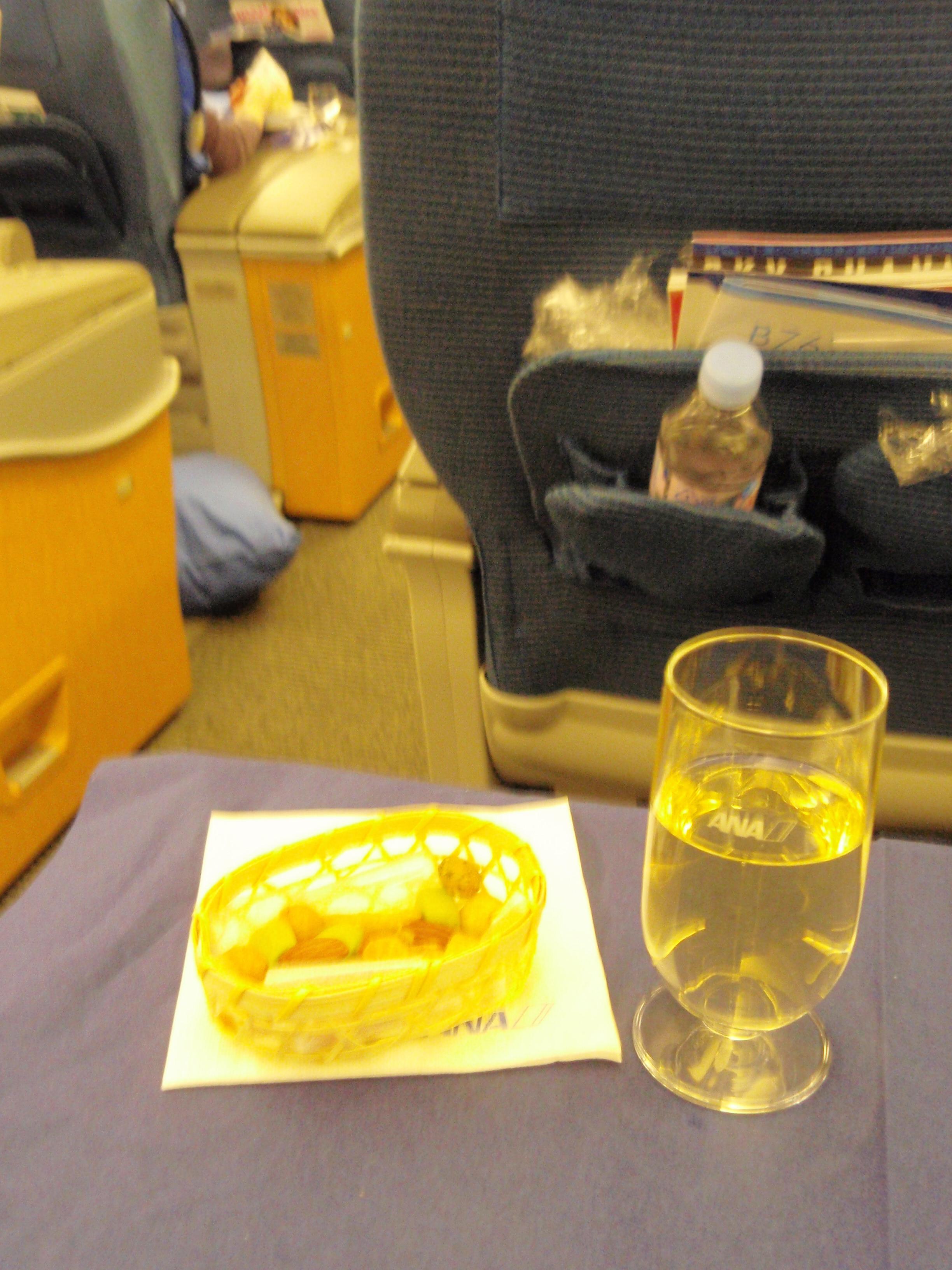 本格ビジネスの皆様は気にせず飲んでましたが、なんちゃってビジネスのびんぞうは機内まで我慢・・・ -