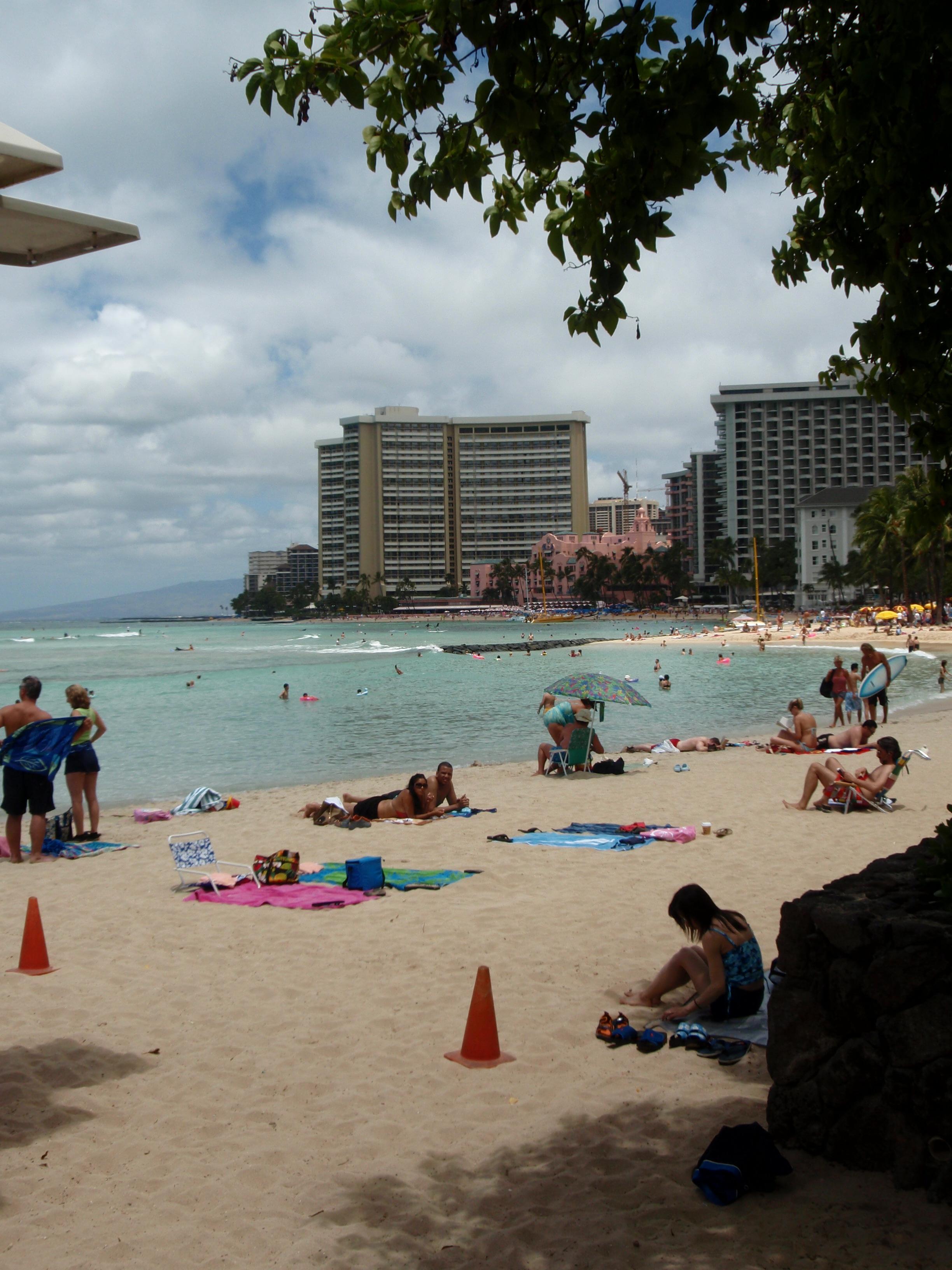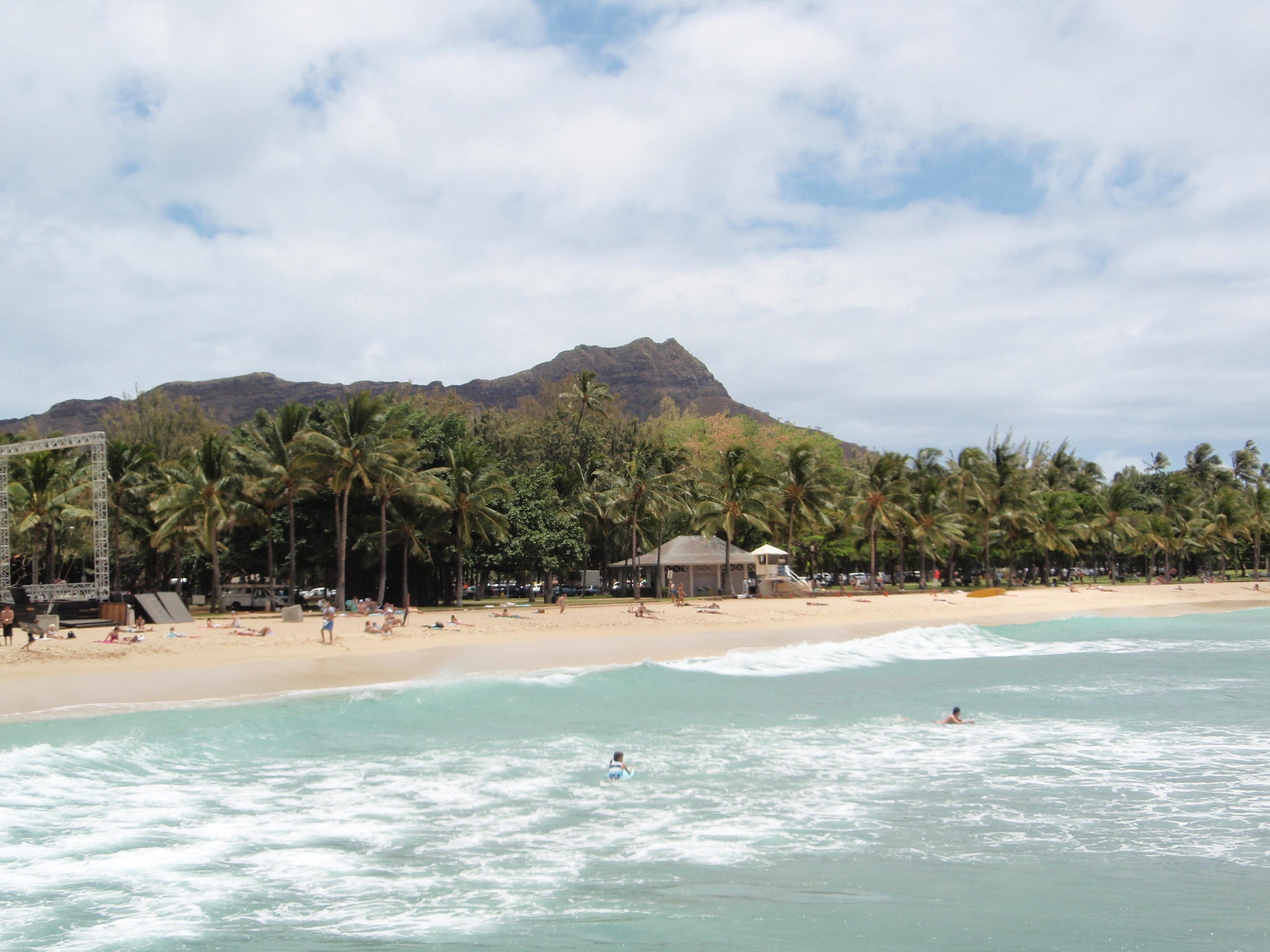 アロハ航空の倒産で乗り継ぎ便がどれも満席で15時過ぎの便なので、ワイキキまで足を伸ばしました。