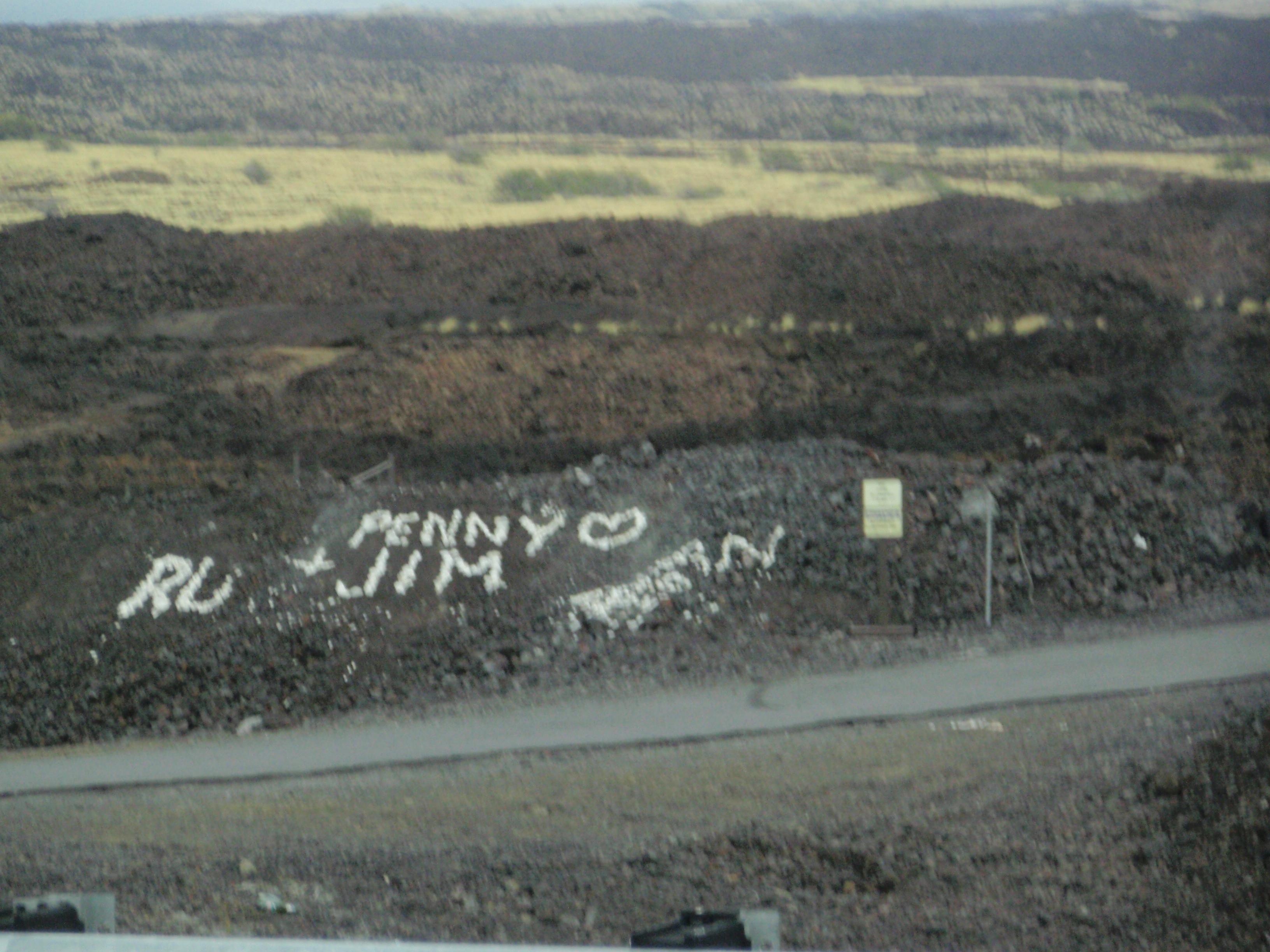 一面溶岩の景色がなんとも言えない感じ。真っ黒な溶岩の大地に珊瑚を並べて名前が沢山描かれてました(^^) -