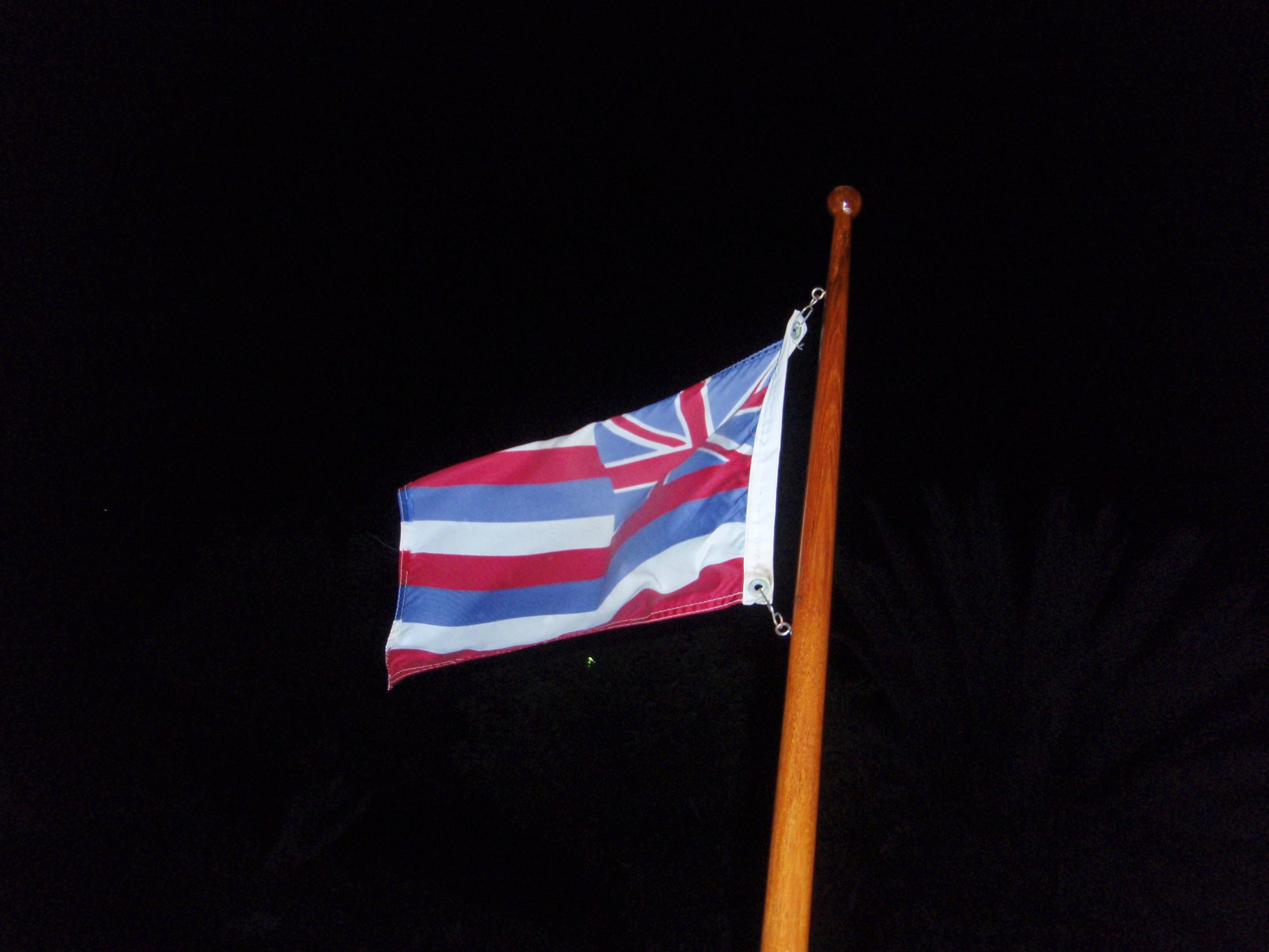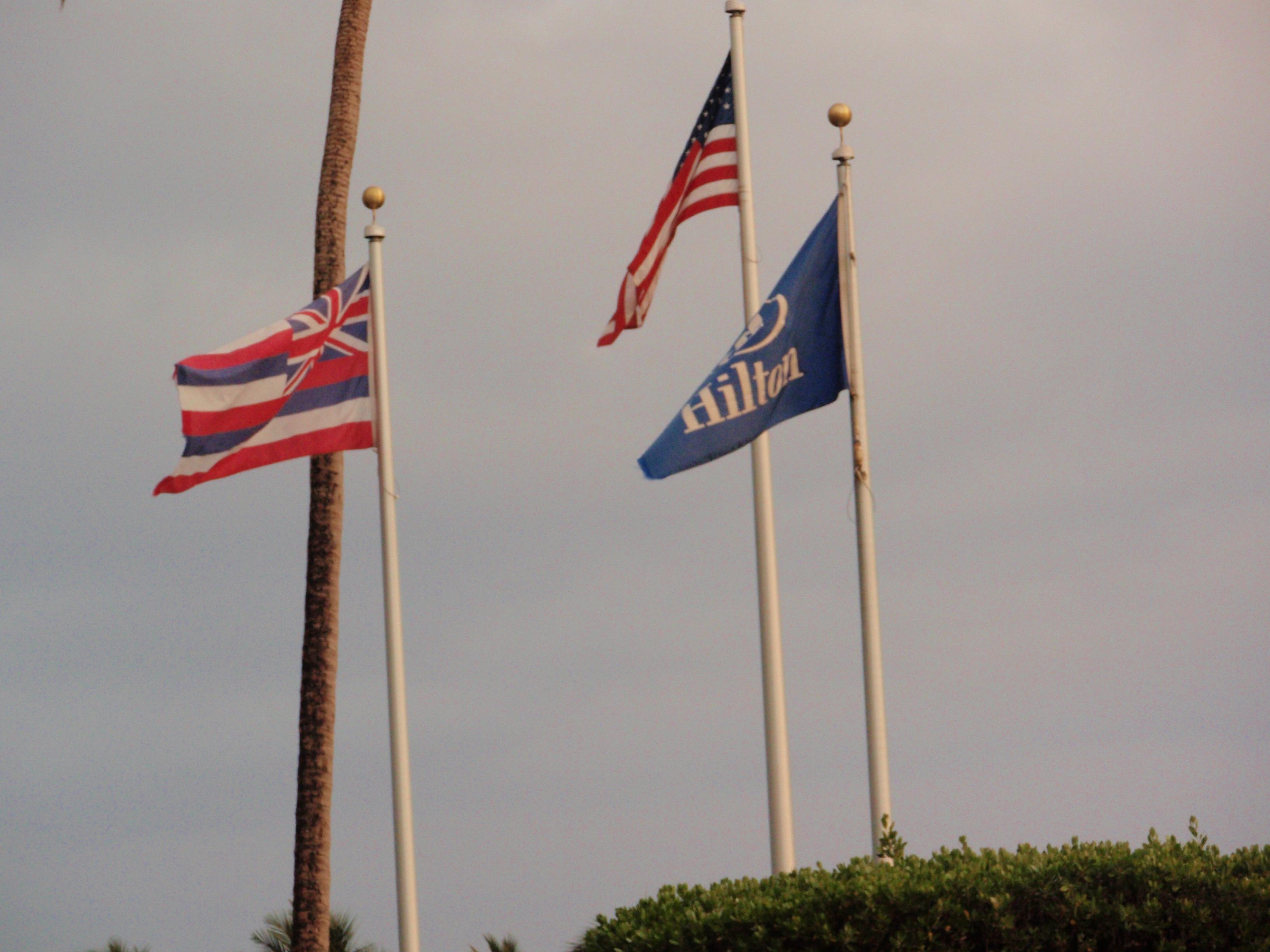 左からハワイの旗、星条旗、ヒルトンの旗が・・・