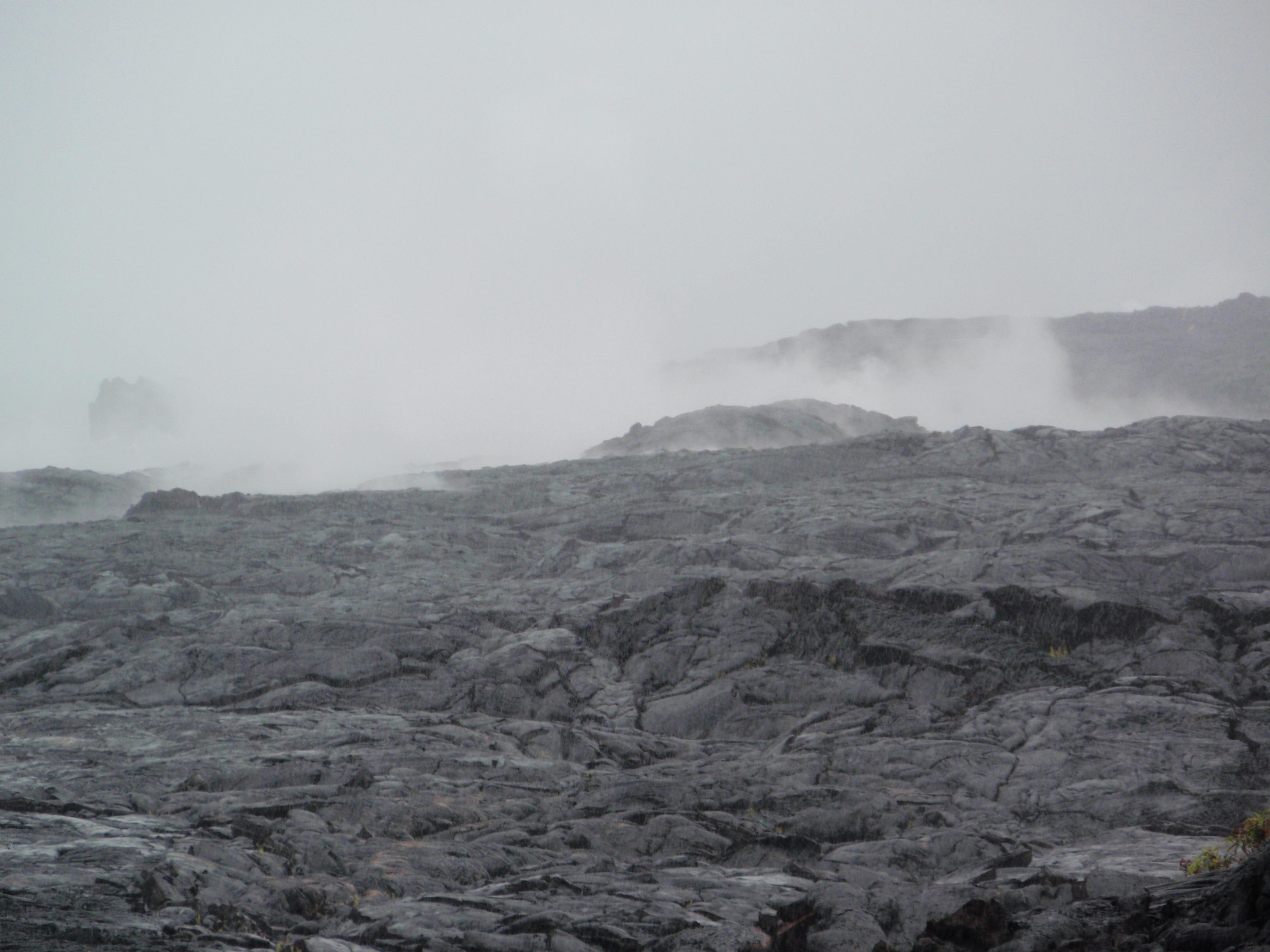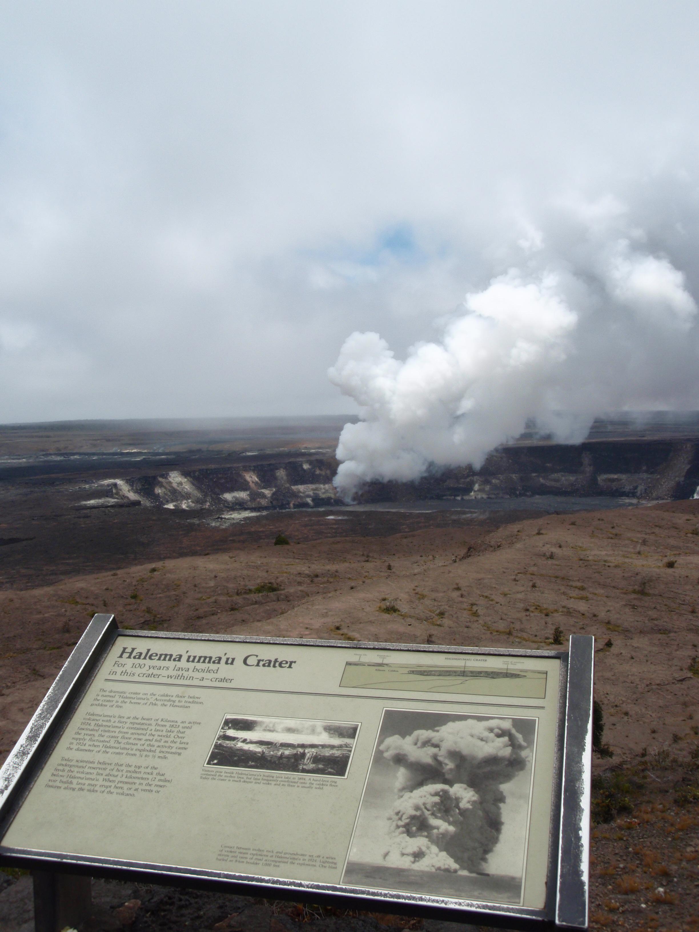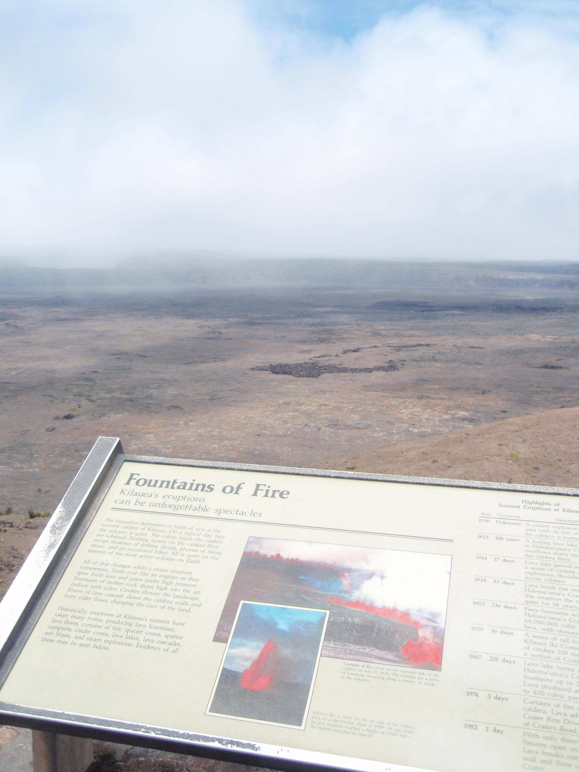 キラウエアの噴煙、すごいですね。私は1年前位の溶岩の上を散歩しましたが、噴煙は何処にも見えずちょっと残念でした。