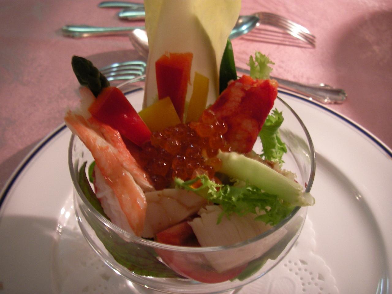 アスパラ、フルーツトマト、帆立貝と蟹のサラダ
