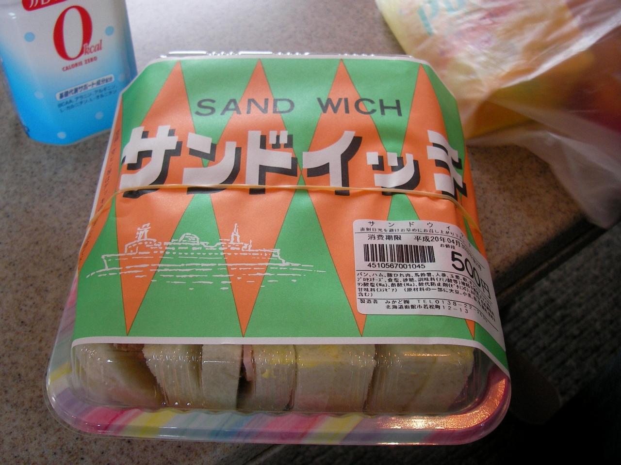 社内販売のサンドイッチを買ってロビーカーで食べる。