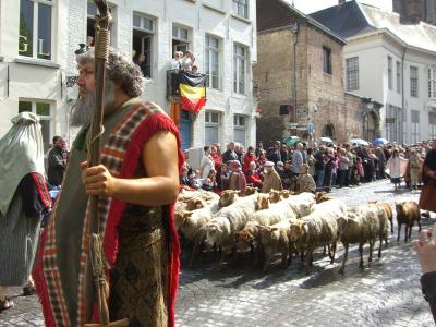 市民たちは、新・旧約聖書の中のエピソードや、十字軍騎士をはじめ中世の装束をまとって町中を練り歩きます。