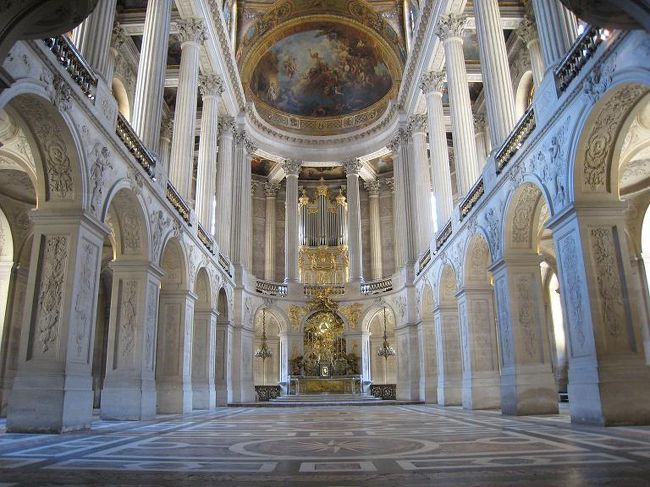 ベルサイユ宮殿鏡の回廊です。ガイドブックの写真は人が写っていないのできれいですが、当り前のことですが、人がわんさかいます。