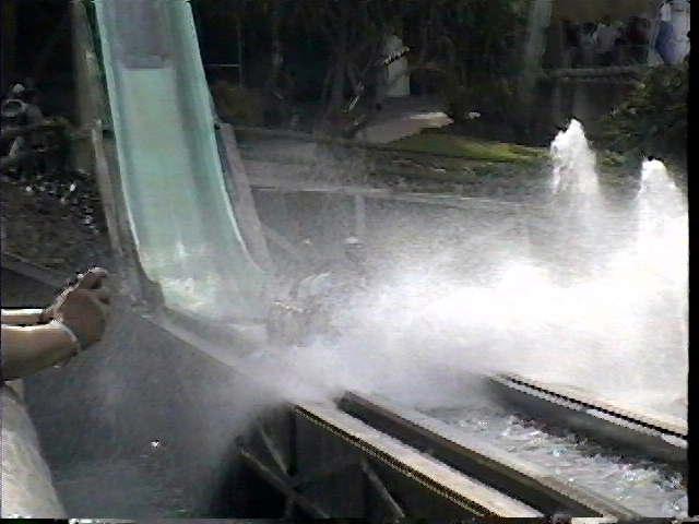 このアトラクションはすごい! 水しぶきを上げて、それが自分にも降りかかってくる。近くに火山があるので、火山の熱で乾かそうっと。 -