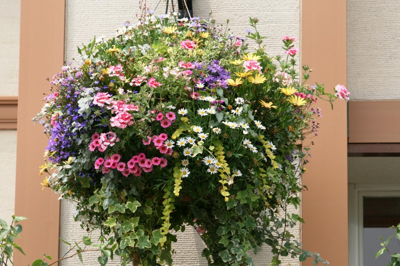 こちらの壁面にも、花いっぱいのバスケットが飾ってありました。よく似た飾りですが、先程の花のバスケットとは、別の飾りです。(同上)